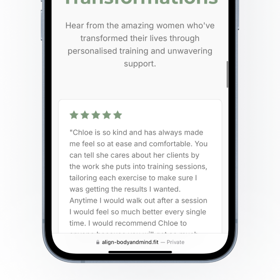 "The new website reflects exactly how I want my brand to feel — strong, professional and welcoming. The integrated onboarding form has streamlined my client intake process and reduced manual admin, allowing me to focus more on coaching. Since launch, I’ve seen a noticeable increase in enquiries."