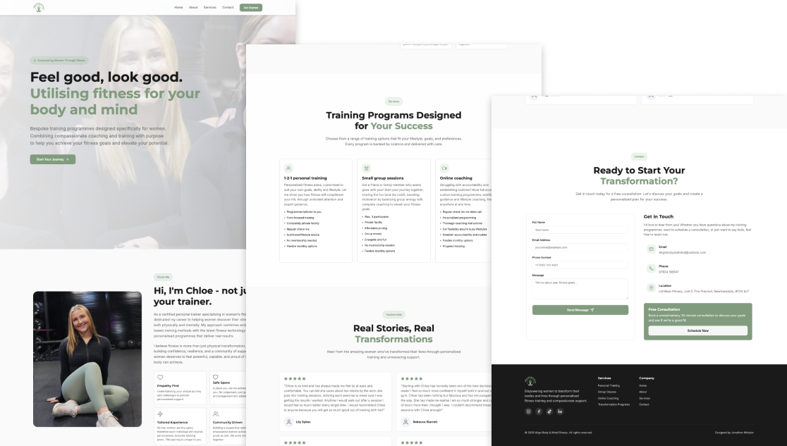 The redesigned experience provided a clearer, more structured pathway for users, improving understanding of services and making it easier to take action. By consolidating information into a single, cohesive platform, the site reduced reliance on external channels and created a more professional and trustworthy digital presence. The project demonstrated how aligning brand, content, and user flow can significantly improve engagement and conversion for small service-based businesses.