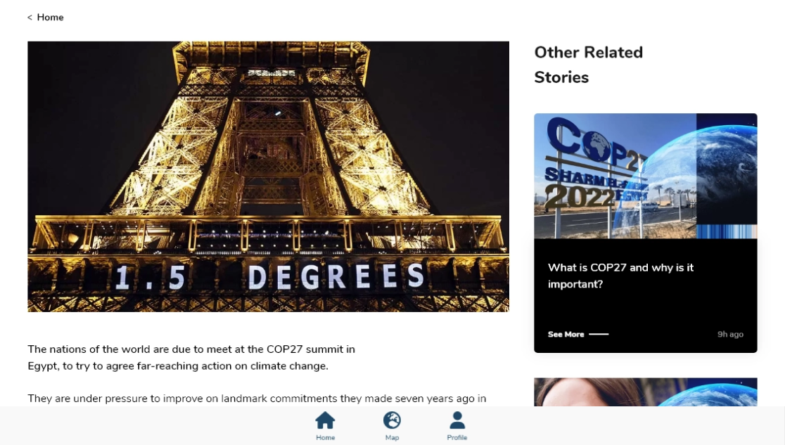 The final product delivered a fully prototyped educational app that made global issues more accessible and engaging for students. By combining interactivity with structured content, the platform supported better understanding and retention while providing teachers with a flexible classroom resource. The project demonstrated how thoughtful UX design can bridge the gap between complex information and meaningful learning experiences.